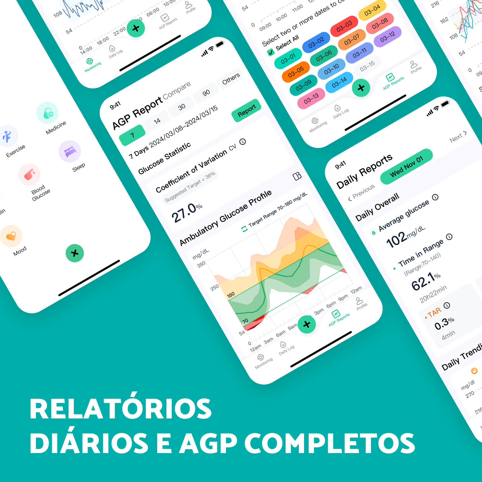 As leituras de glicose e os relatórios gerados pelo dispositivo auxiliam no